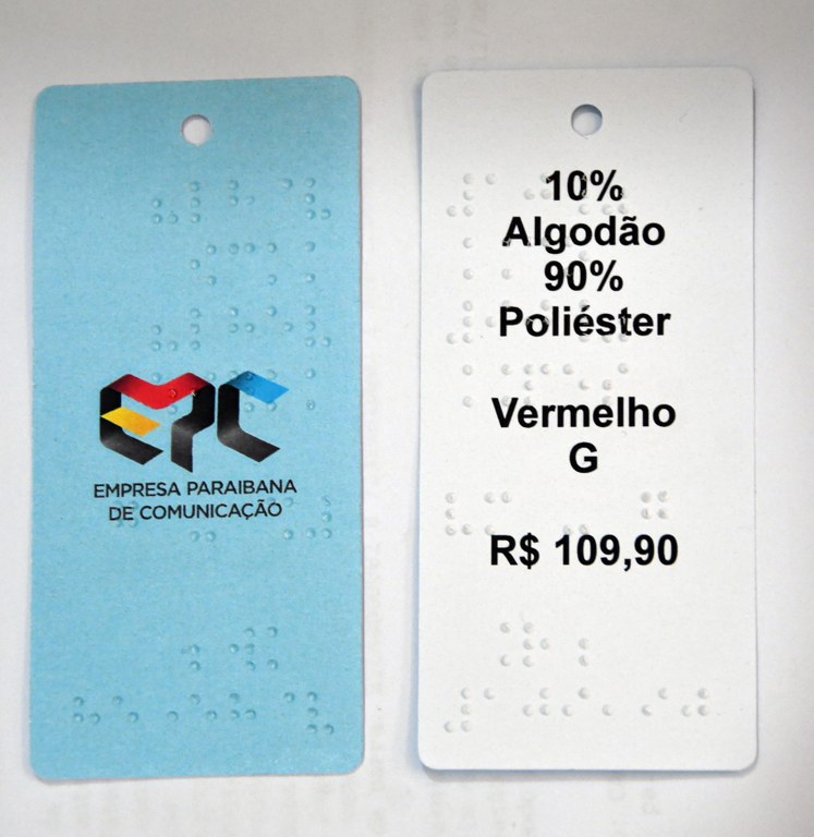 A Empresa Paraibana de Comunicação (EPC), por meio do setor da Imprensa Braille, disponibiliza o serviço de produção de etiquetas para peças de vestuário com transcrição para Braille. A iniciativa se relaciona à nova lei Nº 13.719, sancionada pelo governador João Azevêdo em 05 de junho deste ano, que torna obrigatória a utilização do sistema Braille em etiquetas de peças de roupa comercializadas na Paraíba, contendo, no mínimo, informações quanto ao preço, à cor, ao tamanho e à natureza da peça.