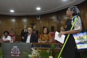 “Eu ocupo essa tribuna, hoje, com o compromisso inadiável de defender a dignidade das trabalhadoras domésticas de João Pessoa e pedir, solicitar, exigir – porque não – que a Lei Complementar 150/2015, que foi fruto de décadas de luta, seja cumprida, fortalecida e fiscalizada com rigor. Essa Lei não foi um favor, foi uma reparação histórica de uma categoria explorada e invisibilizada, composta majoritariamente por mulheres negras, pobres e periféricas”, pontuou Maria do Céu, assistente social da Defensoria Pública da Paraíba.